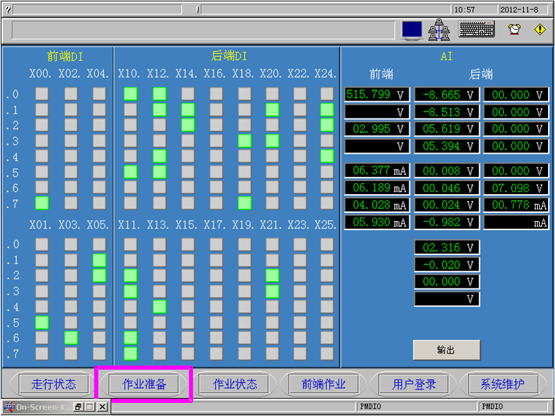 左图为PLC的输入信号状态检测画面,动作不正常时,可快速监控外围的信号是否正确接入到PLC系统内,信号变化是否正常
