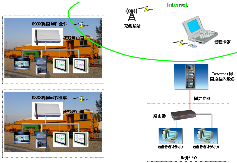 在远程客户端上通过无线通讯模块接入,企业设置的专用服务器。服务中心为所有产品服务。